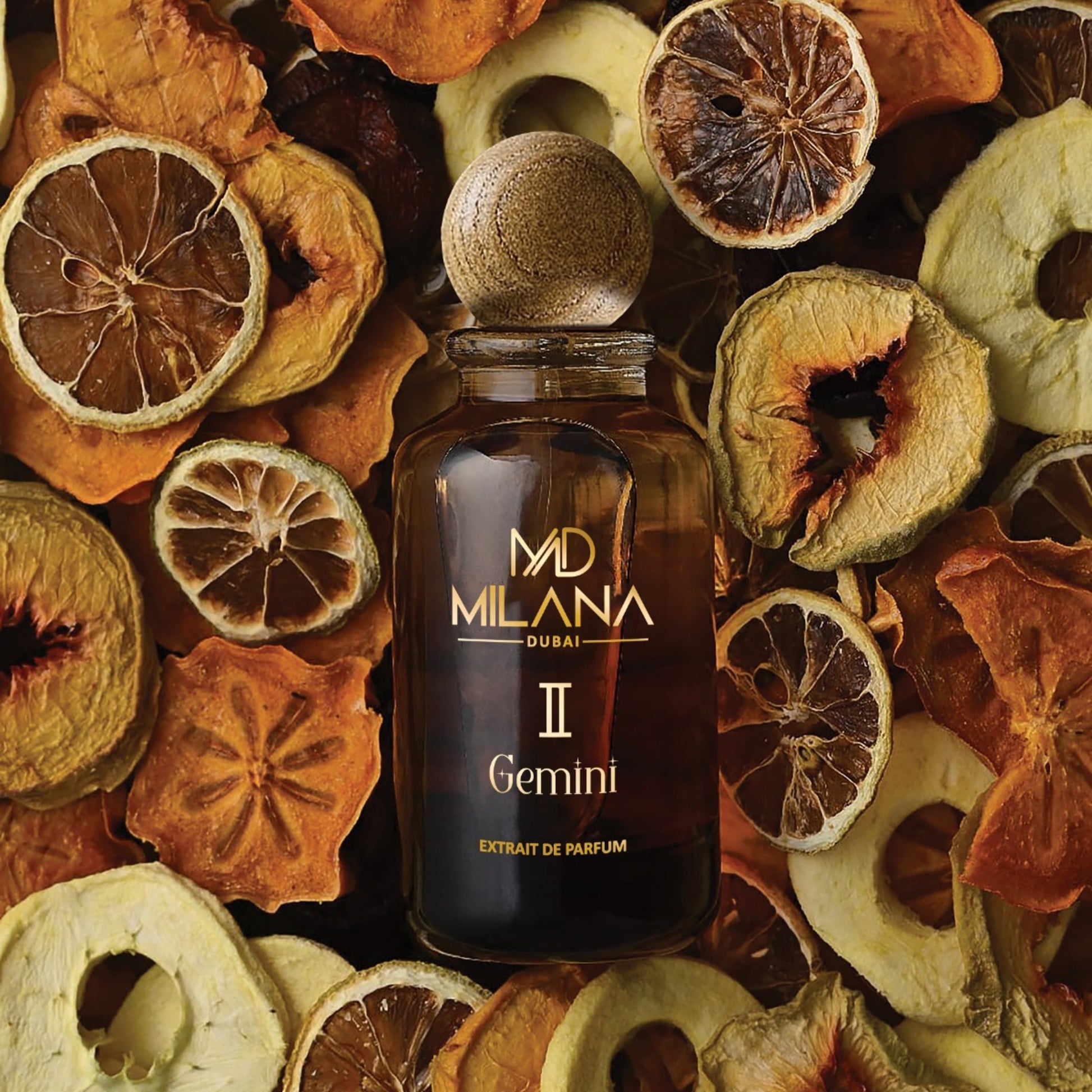 Which fragrance by Milana Dubai best appeals to the versatile interests of the Gemini? This star sign is particularly inquisitive, communicative, easy-going, and flexible. Gemini love change and are consistent optimists: rejections don’t throw them off track so quickly. They are aware of how much life has to offer and enjoy the abundance of new opportunities. Sparkling aromas such as Bergamot or fresh fruits suit their nature. For contrast, Amber and White Musk ground the excited zodiac sign. Gemini by Milana Dubai is with Bergamot, Fruits and Amber thus the perfect choice for the Gemini sign.